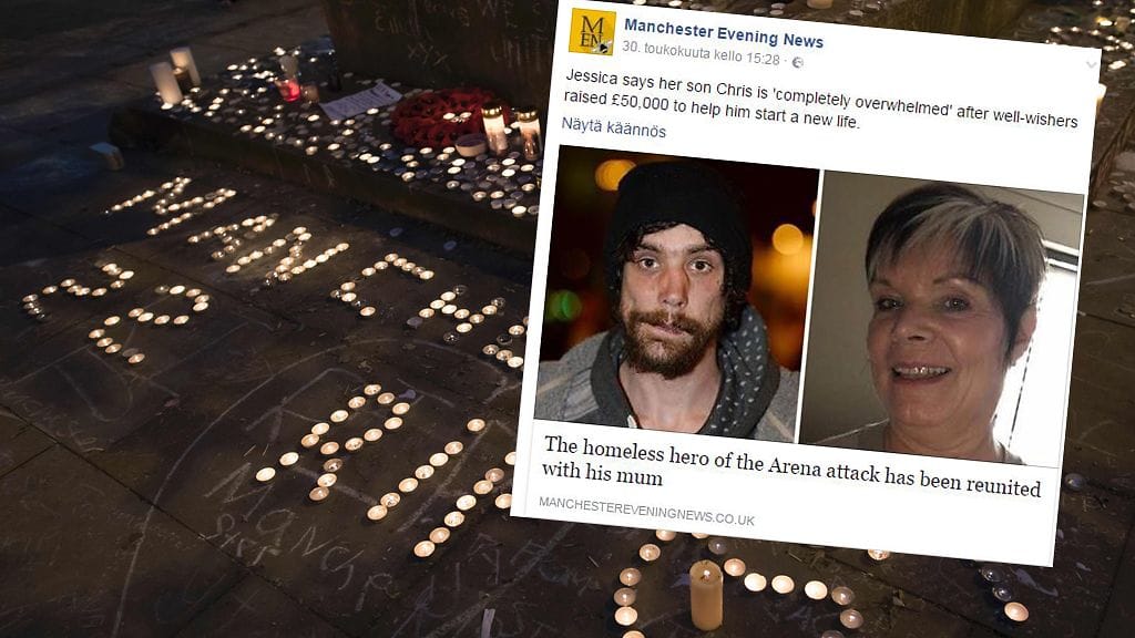 Koditon mies, joka rynni pelottomasti auttamaan Manchesterin iskun uhreja, on saanut yhteyden äitiinsä.