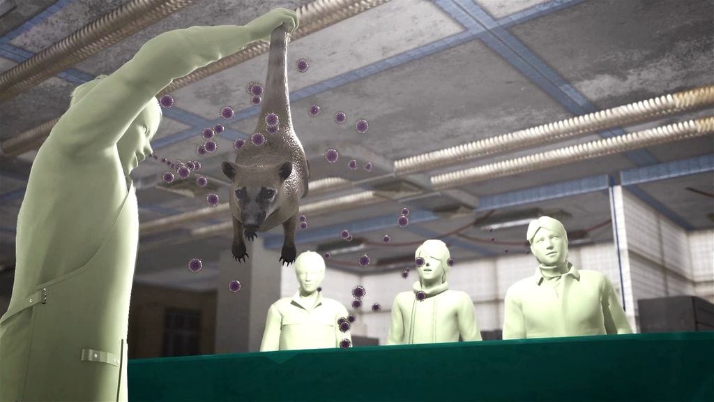 Next Animation -niminen animaatiostudio on nyt rekonstruktoinut koronaviruksen siirtymisen eläimestä ihmisiin.