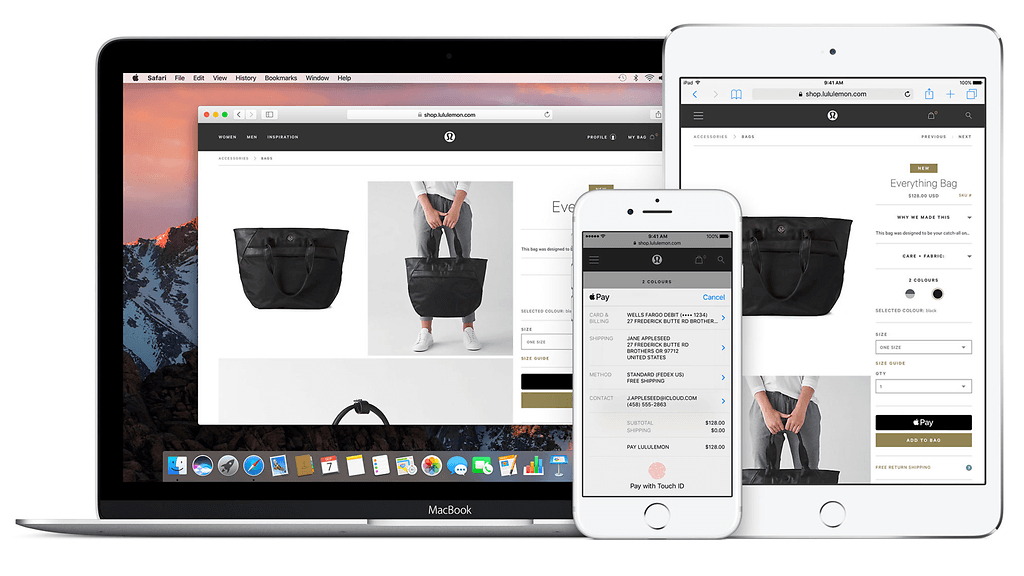 Apple Pay mullistaa maksamista lisäksi myös sovelluksissa ja verkkosivuilla, jotka sitä tukevat. Niissä maksaminen käy jatkossa vain Touch ID:llä tai Face ID:llä maksu vahvistamalla ilman tarvetta syöttää korttitietoja. Tämä toimii myös iPadeissa ja MacBook Prossa, jossa on sormenjälkitunnistin. Apple Pay -maksut onnistuvat myös laajemmin Maceissa Safari-verkkoselaimessa, jolloin maksut vahvistetaan iOS-laitteella tunnistautumalla.