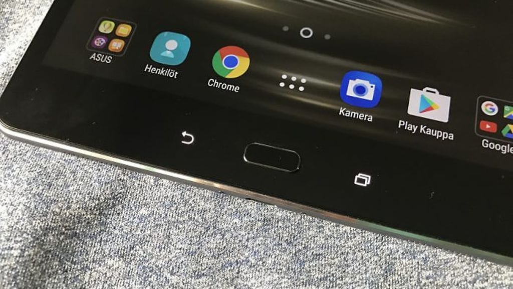 Etupuolelta näytön alta löytyy fyysinen kotinäppäin sekä takaisin- ja moniajo-hipaisupainikkeet. Kotinäppäimessä on sormenjälkitunnistin, joka ei ole nopein mitä älypuhelimissa tai tableteissa on nähty, mutta silti hyvin nopea ja täysin passeli erityisesti tablettiin. Kotinäppäintä pitää painaa sormen tunnistamiseksi laitteen näytön ollessa sammutettuna.
