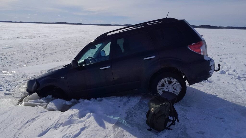 – Tässä oli onneksi vain pieni railo kyseessä. Railot voivat kuitenkin olla monta metriä leveitä ja satoja metriä pitkiä, eli varovainen kannattaa jäällä ajaessa olla, Meriläinen sanoo.