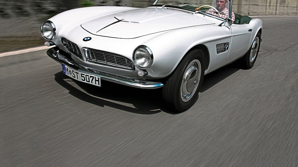 BMW:n tehdas Eisenachissa jäi venäläisten miehitysalueelle, ja tehdas jatkoi BMW-merkkisten autojen tuotantoa vuoteen 1949 asti – ilman lupaa tietysti. BMW AG valmisti sodan jälkeen ensin kattiloita ja pannuja, kunnes se sai luvan vuonna 1948 valmistaa ensimmäisen moottoripyörän. Vuonna 1952 näki päivänvalon 501 eli barokkienkeli. Se oli BMW:n ensimmäinen uusi automalli toisen maailmansodan jälkeen. Sitä seurasi kaksi vuotta myöhemmin kuvassa oleva , joka oli puolestaan ensimmäinen sodan jälkeen rakennettu V8-moottorinen saksalaisauto.