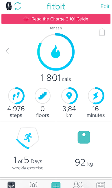 Fitbitin mallisto täydentyi äskettäin Charge 2 -mallilla, joka on nimenomaan aktiivisuusranneke. Kyseessä on Charge HR:n seuraaja. HR oli teknisesti pätevä laite, mutta sen näyttö oli liian pieni ja rannekkeen käyttötuntuma ei ollut paras mahdollinen. Samoin kuin HR, myös Charge 2 tunnistaa sykkeen käyttäjänsä ranteesta. Testissämme syketieto ei läheskään aina vaikuttanut pitävän paikkaansa. Ranneke onkin kiinnitettävä ranteeseen melko tiukasti, jotta sykesensori tuottaa luotettavamman tuloksen.