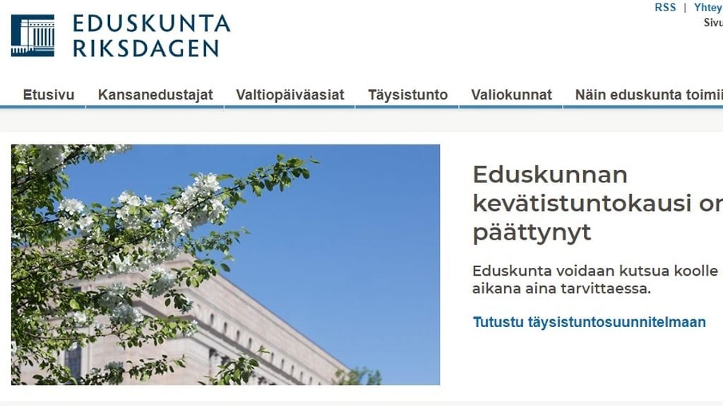Eduskunnan verkkosivut toimivat jälleen normaalisti, eduskunta tiedottaa.