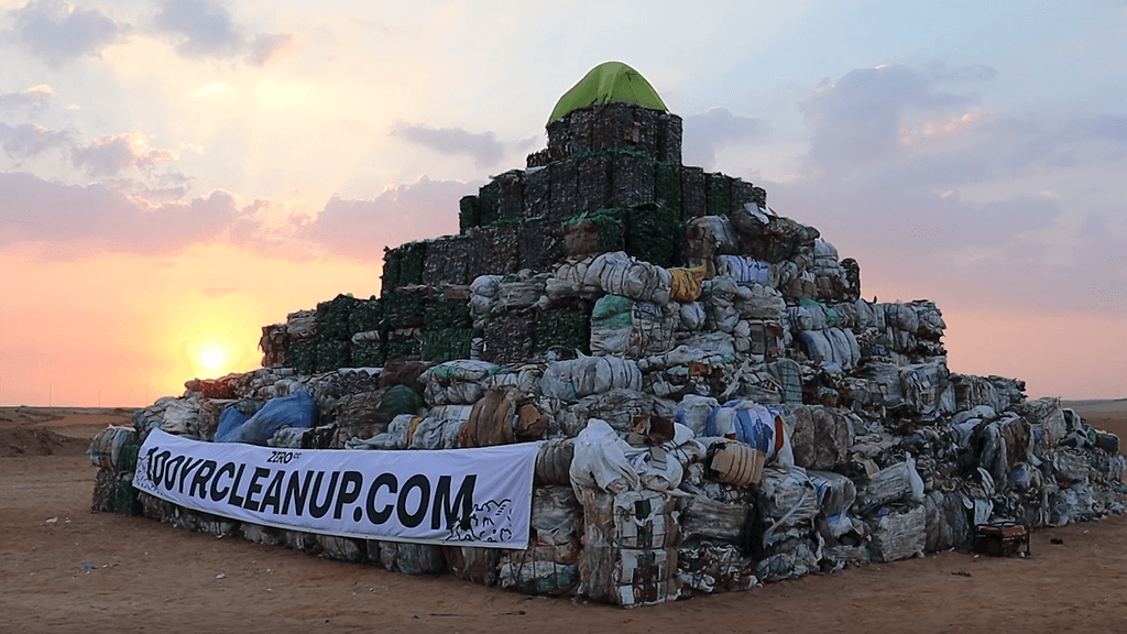 Ilmastonmuutosta vastaan taisteleva yritys Zero Co tempaisi Egyptissä järjestettävän ilmastokokouksen yhteydessä. Yritys rakennutti maan pääkaupungin Kairon läheisyyteen aavikolle kymmenen metriä korkean ja 12 metriä leveän roskapyramidin. Se sisältää 18 000 kilogrammaa Niili-joesta nostettua muoviroskaa.