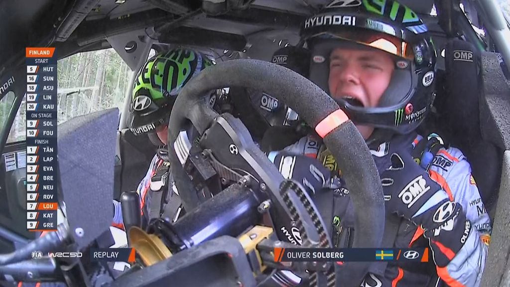 Oliver Solbergin kisaaminen Suomen MM-rallin EK2:lla päättyi nolosti, kun hän rusikoi autonsa heti ensimmäisissä mutkissa katolleen. Nöyryyttävä ulosajo oli jatkoa ruotsalaisnorjalaisen epävarmalle menolle, sillä nuorukainen putosi samalla tapaa pelistä myös eilisessä shakedownissa.