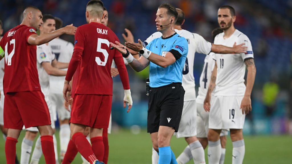 Turkin käsivirheet herättivät keskustelua ensimmäisellä puoliajalla. Italian pelaajat vaativat pariinkin otteeseen rankkaria käsivirheestä rangaistusalueella, mutta avauspelin perusteella linja on tiukka – rankkareita ei anneta vähin eväin.