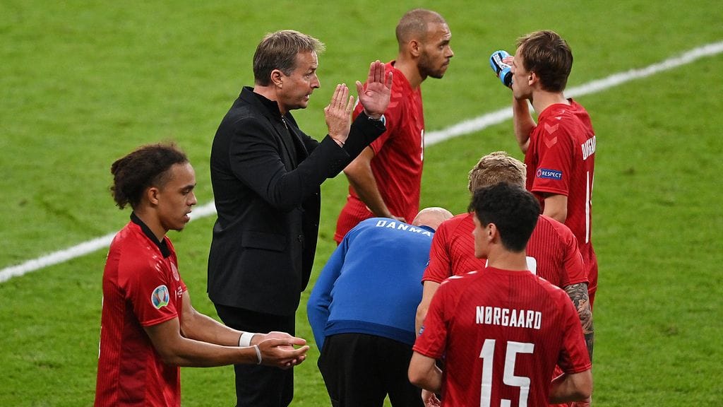 Tanskan päävalmentaja Kasper Hjulmand teki triplavaihdon 67. minuutilla, kun se vaihtoi kärkipelaaja Kasper Dolbergin, toisen hyökkääjän Mikkel Damsgaardin ja oikean laitapelaajan Jens Stryger Larsenin pois kentältä.