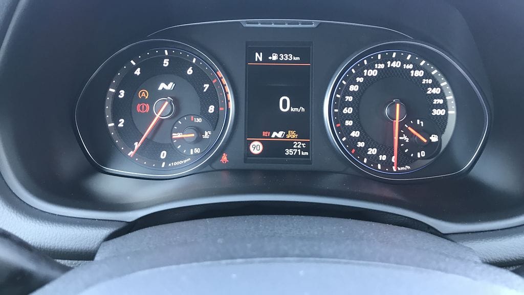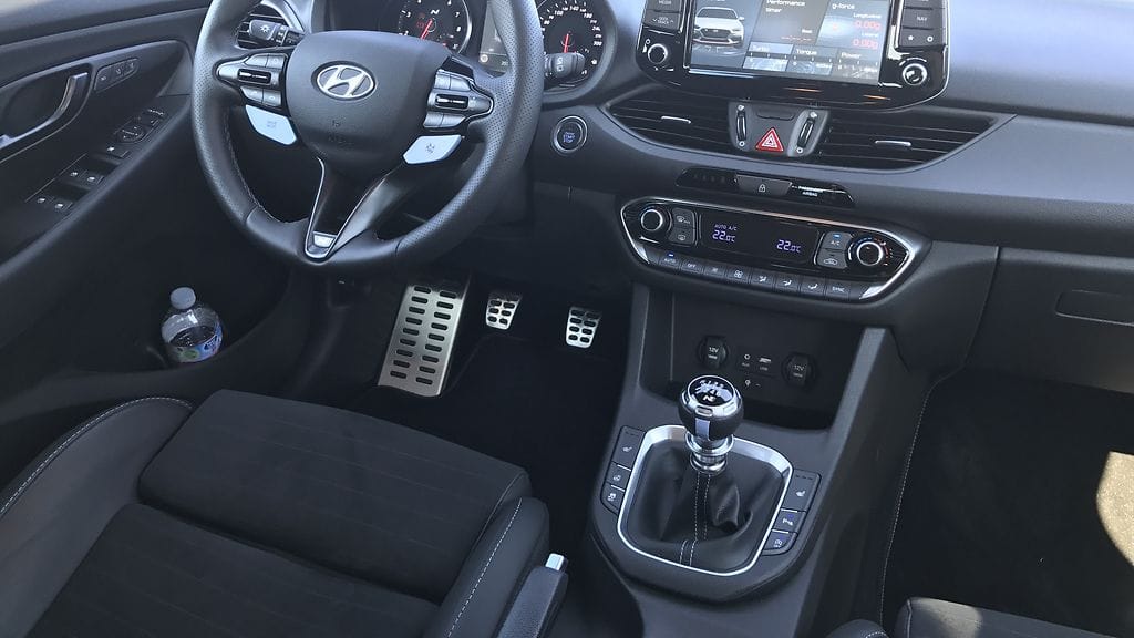 Sisätiloissa vastassa ovat urheiluistuimet. Säätövarat riittävät hyvin eri mittaisille kuljettajille ja penkit tarjoavat riittävän tuen. Penkkien lisäksi N-version erottaa ohjauspyörästä, josta löytyvät ajotilanvalintaan liittyvät painikkeet, ja ehkä jopa hieman yllättäen perinteinen käsijarru. Muussa i30-mallistossa seisontajarru on toteutettu sähköisesti, mutta N-versiossa valmistaja haluaa korostaa auton kuljettajalle tarjoamia mahdollisuuksia tämän kaltaisilla pienilläkin yksityiskohdilla.