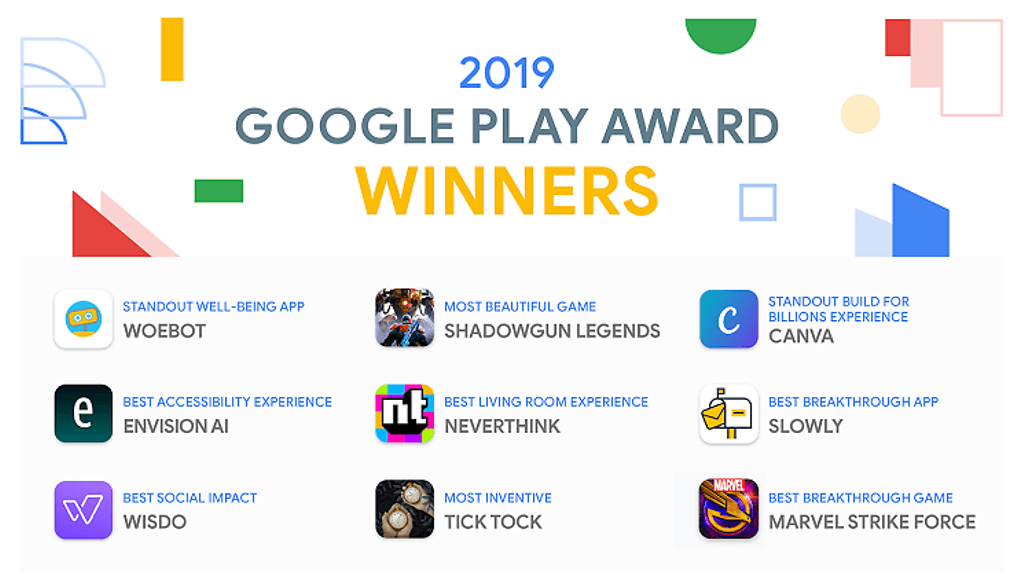 Vuosittain jaettavilla palkinnoilla Google haluaa nostaa esiin Google Play -sovelluskaupan innovatiivisimpia sovelluksia ja pelejä sekä antaa tunnustusta niiden kehittäjille.