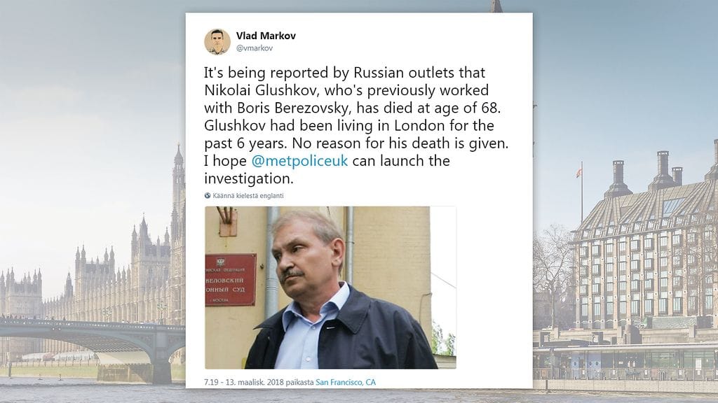 Glushkovin kuolinuutinen tuli vain reilu viikko sen jälkeen, kun toinen maanpaossa ollut venäläinen, Sergei Skripal, löydettiin tajuttomana ostoskeskuksesta Britanniassa. Tutkimusten mukaan hän oli altistunut Venäjällä kehitetylle hermomyrkylle.