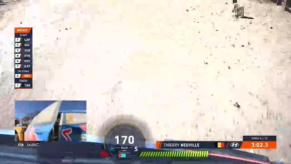 Rally1-kuljettajien keskuudessa on käynyt Meksikon MM-rallin perjantaipäivänä kova kato, vaikka erikoiskokeita on takana vasta kolme. Hyundain Thierry Neuville on vielä kilpailussa mukana, vaikka hänkin oli lähellä ajaa pusikkoon päivän toisella ja koko rallin neljännellä erikoiskokeella. Kaasu pohjassa ajettavalla osuudella täysin yllättäen eteen tullut töyssy säikäytti belgialaiskuljettajan pahanpäiväisesti. Lisäksi se teki todella kipeää niin Neuvillelle ja kartturi Martijn Wydaeghelle kuin kaksikon autollekin.