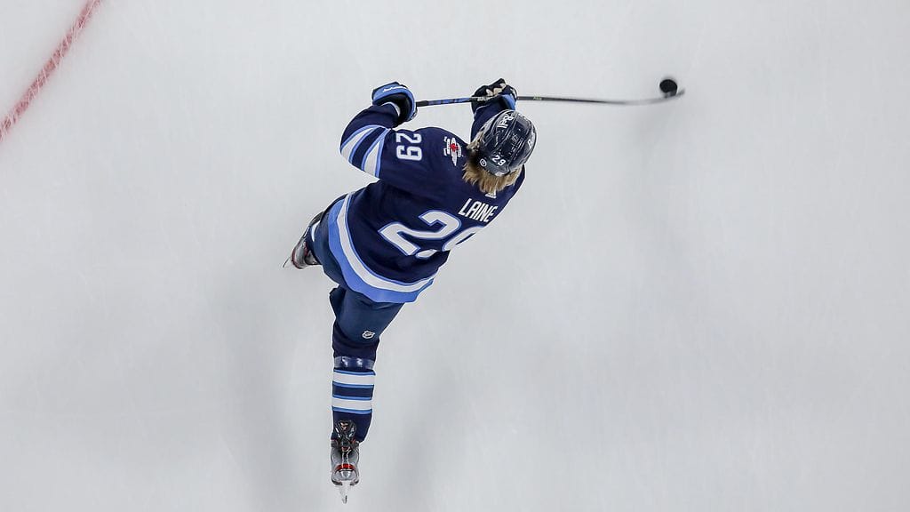 Yhdessä Kyle Connorin ja Paul Stastnyn kanssa hyökännyt Laine iski ensimmäisen osumassa avauserässä noin seitsemän minuutin pelin jälkeen, kun tamperelaisen rannelaukaus tasoitti pelin lukemiin 1-1.
