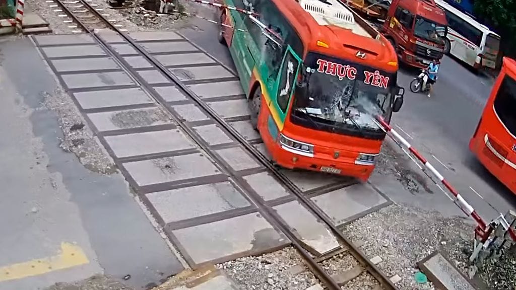 Liian suurella tilannenopeudella ajanut bussikuski ei ehtinyt pysäyttää ajoneuvoaan liikennevirran stopattua, vaan joutui tekemään tiukan väistöliikkeen. Väistö valitettavasti suuntautui päin viereisen tasoristeyksen puomeja, jotka olivat juuri sulkeutumassa lähestyvän tavarajunan vuoksi.