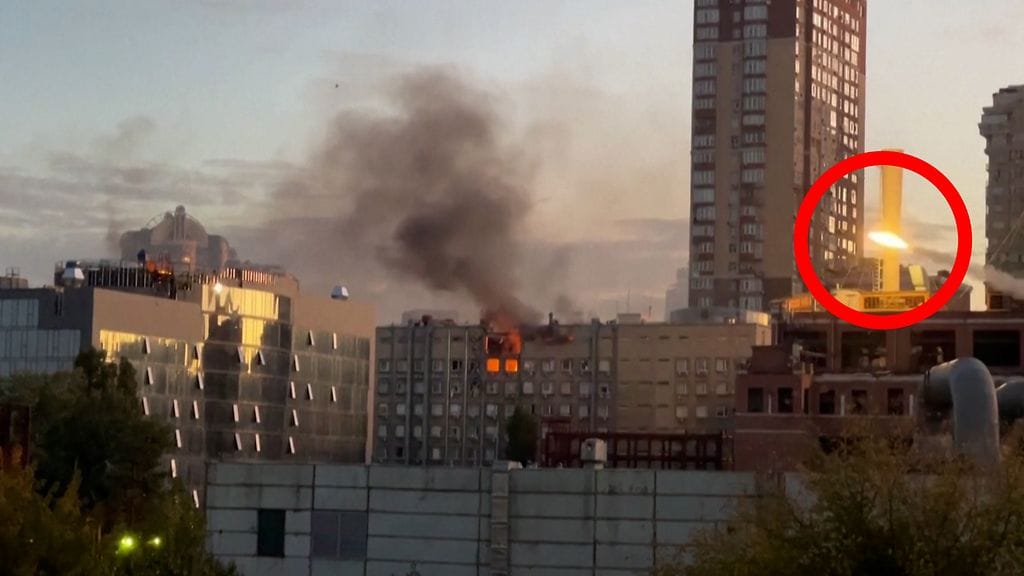 Yläpuolelta löytyvältä videolta on nähtävissä hetki, jossa Ukrainan ilmatorjunta pyrkii torjumaan lennokki-iskun Kiovan keskustassa.