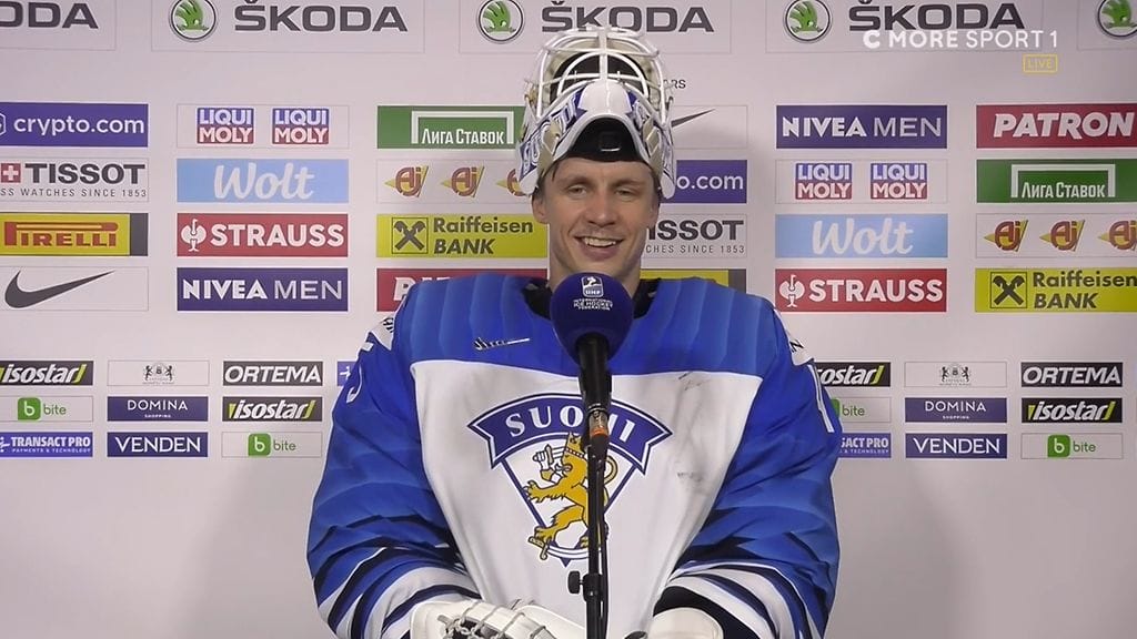 Olkinuora oli mukana kolmosvahtina Leijonien maailmanmestarijoukkueessa vuonna 2019. Nyt mies kantaa harteillaan ykkösvahdin viittaa.