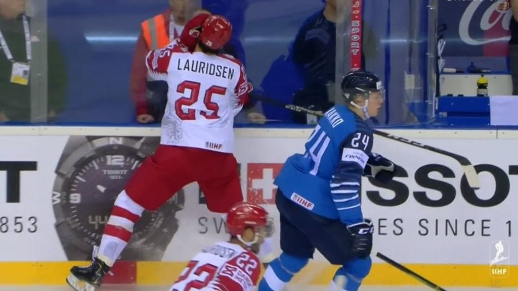 Tanskan puolustaja Oliver Lauridsen kävi kuumana Kaapo Kakon selvittyä vahingossa tapahtuneesta mailan iskusta ilman rangaistusta. Hetkeä myöhemmin tanskalaispelaaja komennettiin huitomisesta jäähyboksiin jääkiekon MM-kisojen ottelussa.