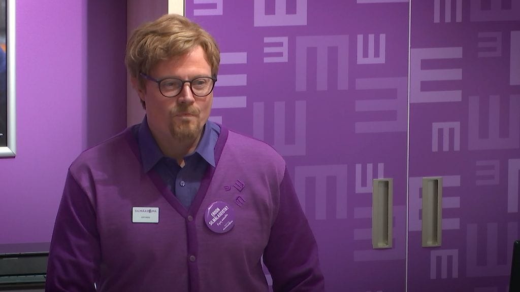 Myyjäksi maskeerattu näyttelijä kuumotteli pahaa-aavistamattomia asiakkaita silmälasiliikkeessä.