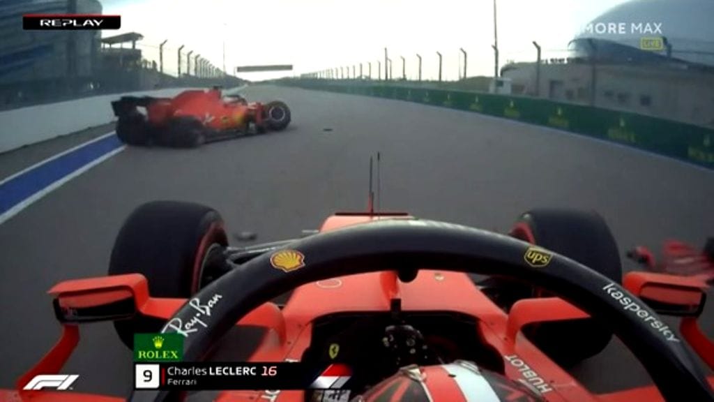 Sebastian Vettel säästyi loukkaantumiselta dramaattisessa ulosajossaan Venäjän F1-kisan aika-ajoissa. Todellinen vaaratilanne tuli kuitenkin eteen vasta, kun Ferrarin tallikaveri Charles Leclerc iski paikalle heti perään.