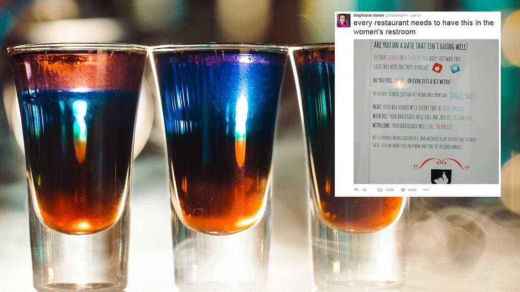 Floridan St. Petersburgissa sijaitsevassa Iberian Rooster -baarissa on myynnissä salainen shotti. "Angel shot" -nimellä kulkeva shotti tulee tilata silloin, kun tarvitsee baarimikon apua päästääkseen karkaamaan uhkaavasta tilanteesta.