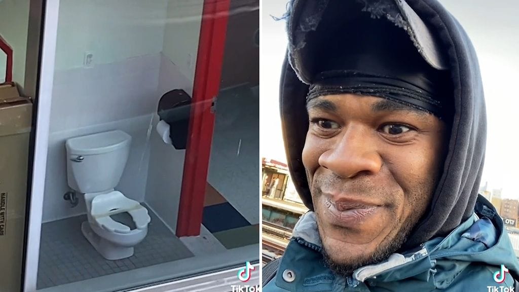 Onko tässä New Yorkin parhaimmat vai ikävimmät vessanäkymät? Mies kummasteli erikoiseen paikkaan asennettua vessaa kotimatkallaan New Yorkissa.