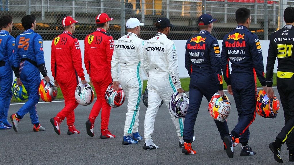 Muut F1-kuskit polvistuivat Black Lives Matter -tempauksen aikana.