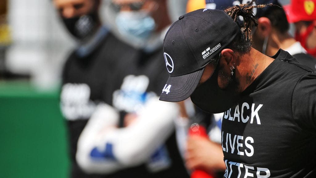 F1-varikon polvistuminen toimi eleenä rasismia vastaan tasa-arvon puolesta. Hamiltonilla oli päällään musta t-paita, jossa edessä luki Black Lives Matter ja takana "end racism" eli lopettakaa rasismi. Muiden kuskien mustissa paidoissa luki edessä "end racism".