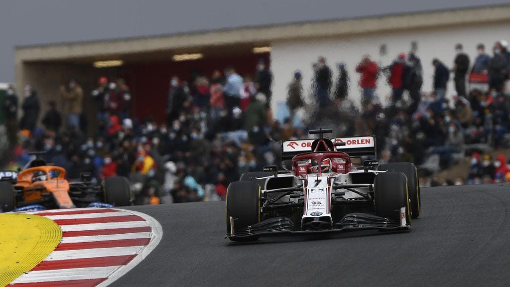 Portugalin GP:n kaksi ensimmäistä kierrosta olivat sateen kasteleman radan vuoksi erittäin tapahtumarikkaita. Kirkkaimmin 20 kuljettajan joukossa loistivat McLarenin Carlos Sainz ja Alfa Romeon Kimi Räikkönen.