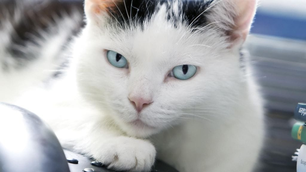 Kissa kaipasi huomiota kesken haastattelun, mutta haastateltava suhtautui lemmikkinsä temppuiluun tyynesti.
