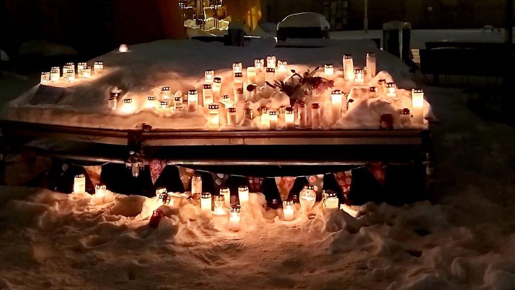 Kynttilämeri valaisi perjantai-iltana Koskelan teinisurman tapahtumapaikkaa. MTV Uutisten lukija lähetti toimitukseen kuvan uhrin muistoksi jätetyistä kynttilöistä.