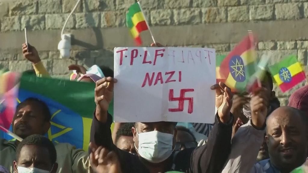 Kymmenettuhannet ihmiset kokoontuivat sunnuntaina Etiopian pääkaupunkiin Addis Abebaan osoittamaan mieltään hallinnon tueksi ja Tigrayn kapinallisliikettä vastaan.