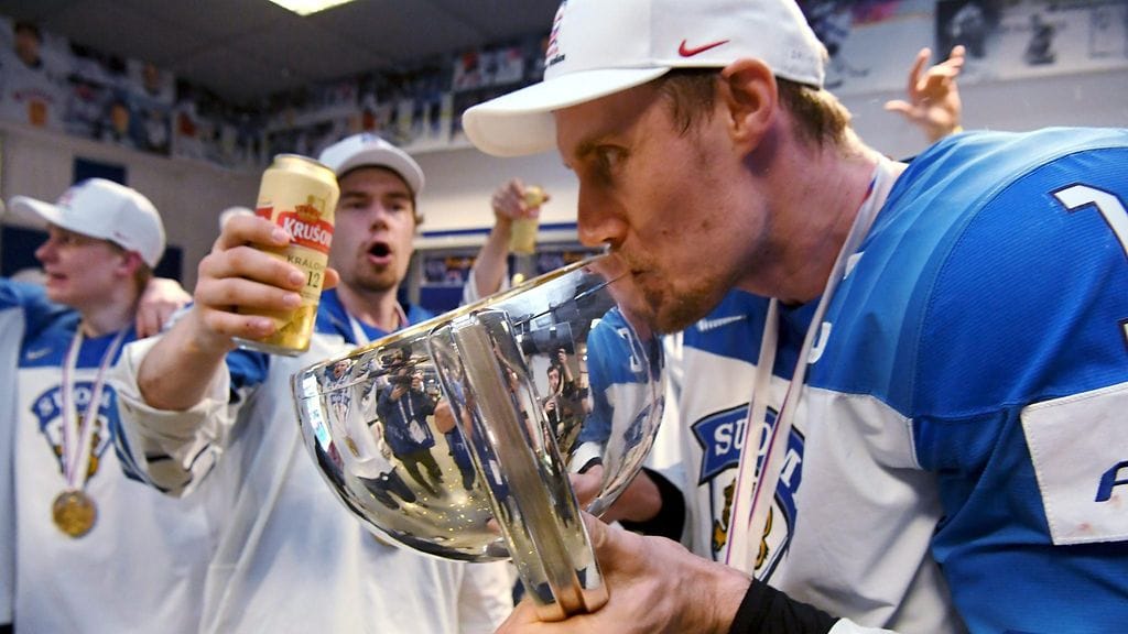 Laulu raikasi, kun Leijonajoukkue kajautti kunnon kuorossa Antero Mertarannan selostuksesta tehdyn ”Löikö Mörkö sisään?” -kipaleen kapteeni ja finaalisankari Marko Anttilan kunniaksi. Sen jälkeen olikin vuorossa perinteinen onnittelulaulu, sillä Anttila täytti vuorokauden vaihduttua 34 vuotta.