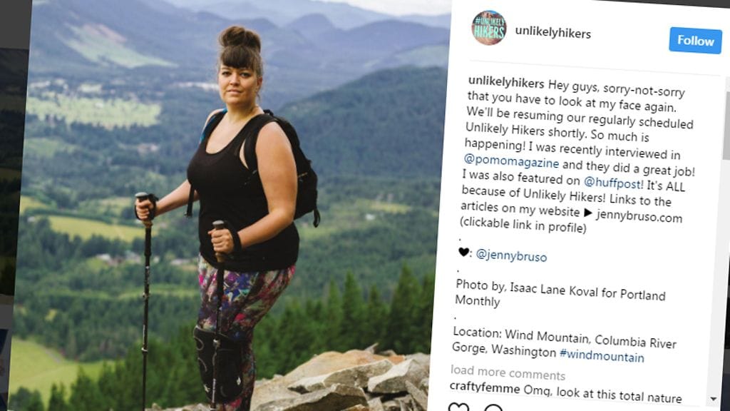 Amerikkalainen Jenny Bruso harrastaa patikointia, ja jakaa siitä myös kuvia. Bruson treenikuvat ovat kuitenkin hyvin erilaisia kuin Instagramissa yleensä nähtävät fitness-otokset: hän kuvaa itseään muun muassa sanoilla "lihava", "queer" ja "sisätiloissa kasvanut".