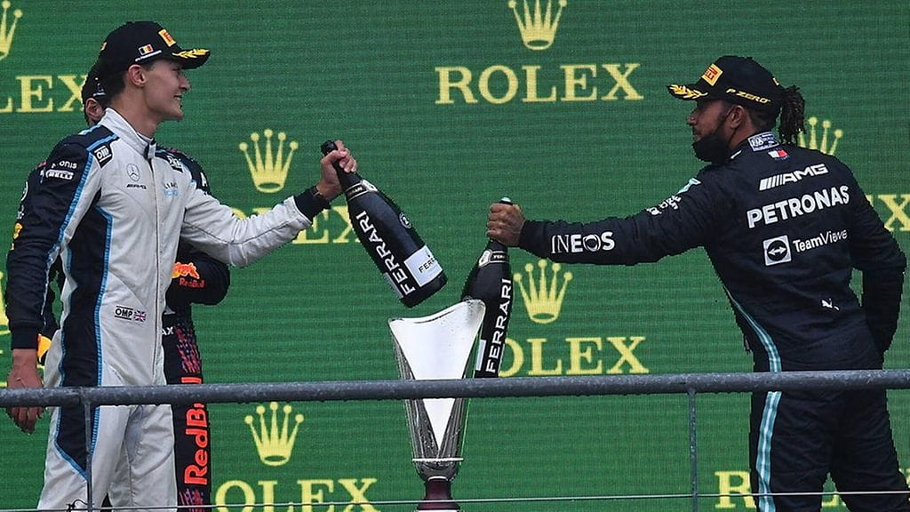 Russell onnistui sadesäässä nousemaan peräti toiseen lähtöruutuun ja piti sijoituksen myös palkintopallille asti, kun kisaa ei voitu käynnistää kaatosateessa sunnuntaina.