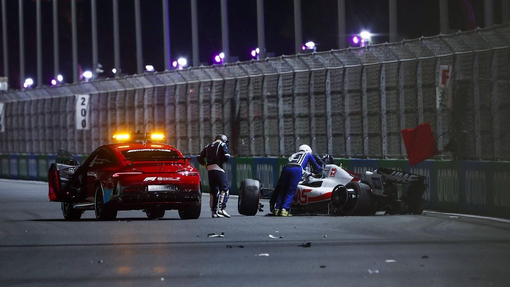 Saudi-Arabian GP:n aika-ajot keskeytyivät toisessa osiossa toistamisen punaisilla lipuilla, kun Haasin Mick Schumacher ajoi ulos.