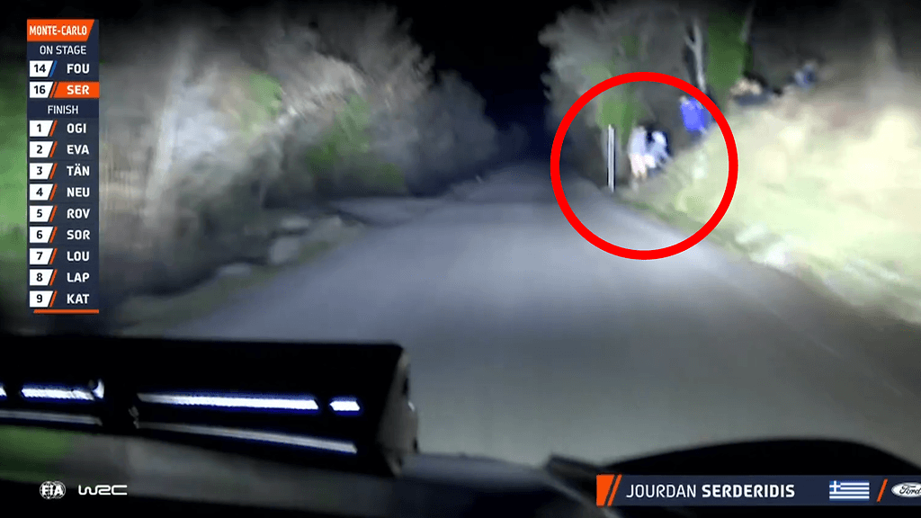 Rallin seuraajat kohtasivat torstaina yllättävän näyn, kun M-Sport-kuski Jourdan Serderidiksen autokameraan näytti ilmestyvän petipuuhat tien varteen siirtänyt pariskunta.