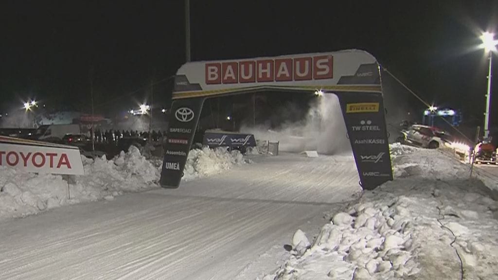 Toyota-kuljettaja Elfyn Evans päätti Ruotsin MM-rallin lauantaipäivän erikoisella tyylillä, kun hän katkaisi maalialueelta valot maaliviivan ylittämisen jälkeen.