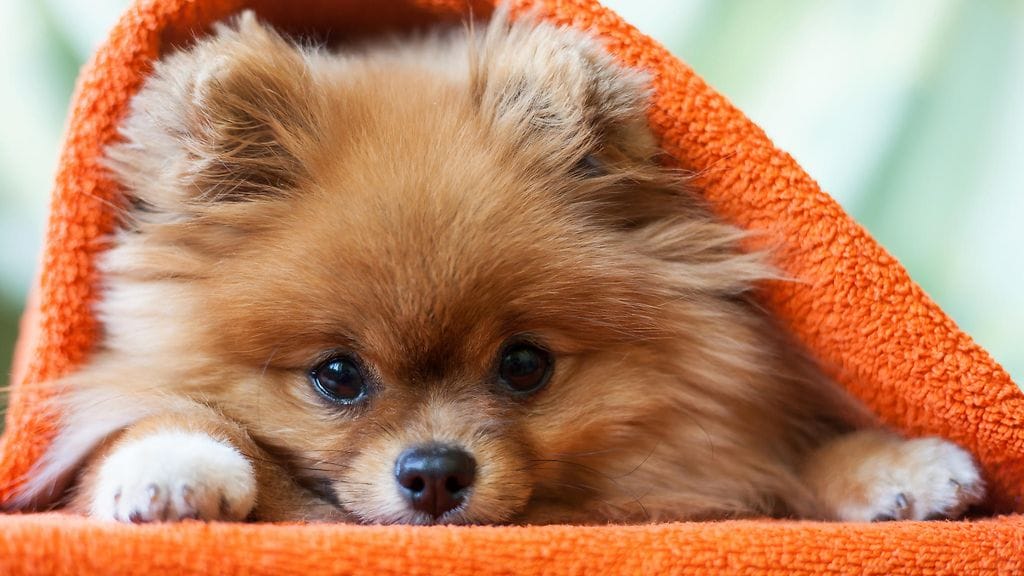 Ensimmäisessä kuvassa naisen pomerian-rotuinen koira näyttää suloisen pörröiseltä. Seuraavassa kuvassa ei niinkään. Koronaviruksen aiheuttaman karanteenin sivulliseksi uhriksi joutunutta koiraa ei juuri enää samaksi tunnistaisi.