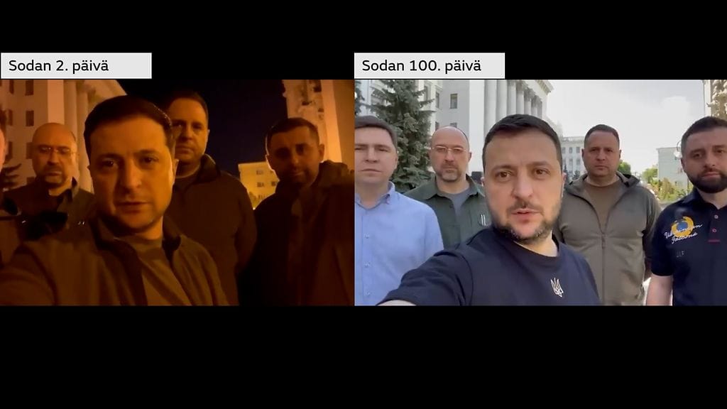 Ukrainan presidentti julkaisi videon, kun sotaa on käyty 100 päivää. Videon yhdennäköisyys Zelenskyin ensimmäisen videon kanssa on hämmentävä.