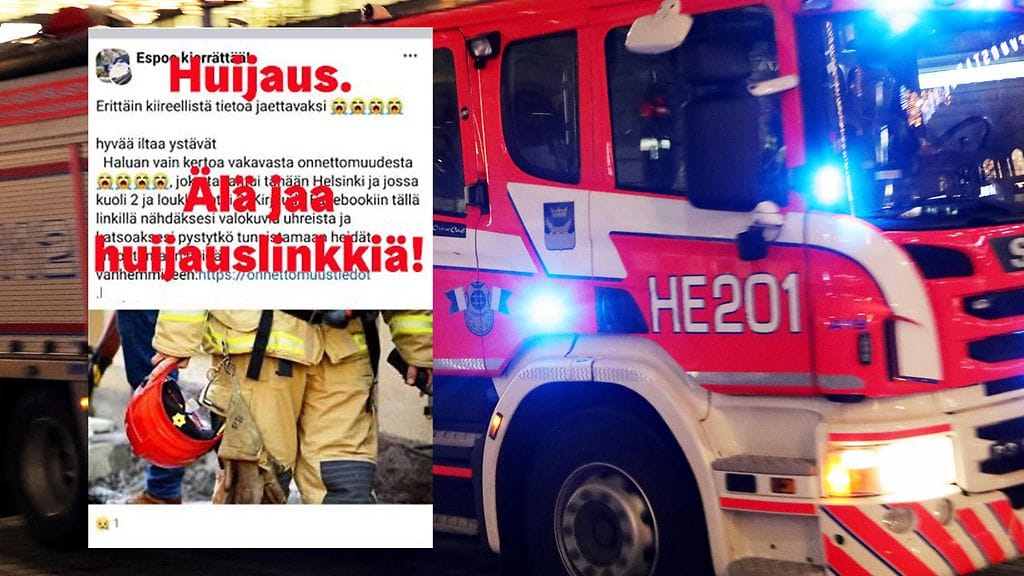 Helsingin pelastuslaitos varoittaa Facebookissa leviävästä huijauksesta, jonka mukaan Helsingissä olisi sattunut tänään kuolonuhreja vaatinut onnettomuus.