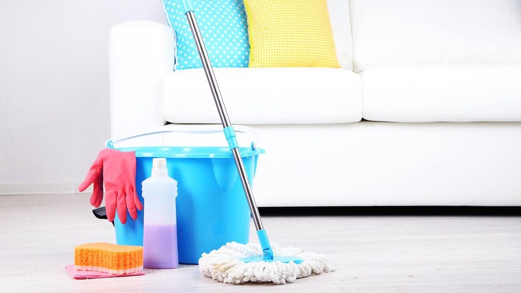 Pese lattia miedolla pesuaineella ja nihkeällä liinalla, joka on kierretty kuivaksi.