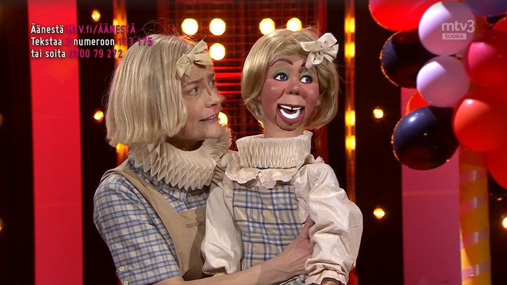 – Kyllä olen yhdessä tulikokeessa tehnyt hahmon, joka puhui liikuttamatta suutaan, mutta en ole sitä harrastanut tai treenaamalla treenannut. Maanantaina sai nuken ja otin tällaisen todella vaikean haasteen. Rakastan niitä, Hämäläinen nauraa.