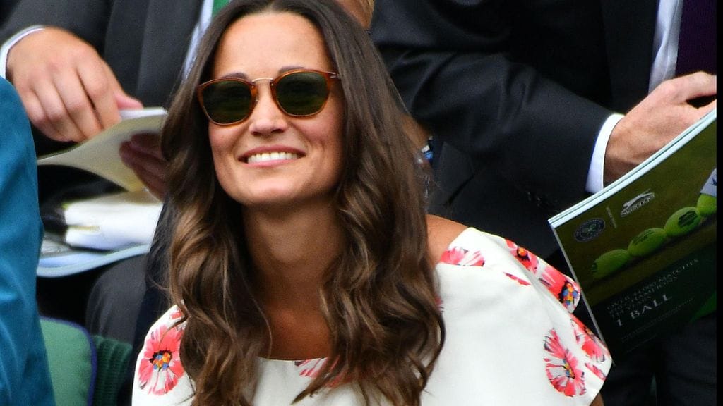Pippa Middleton saapui Wimbledon yleisöön vartaloa myötäilevässä kukkamekossa ja leveä hymy kasvoillaan. Veli oli mukana seuralaisena.