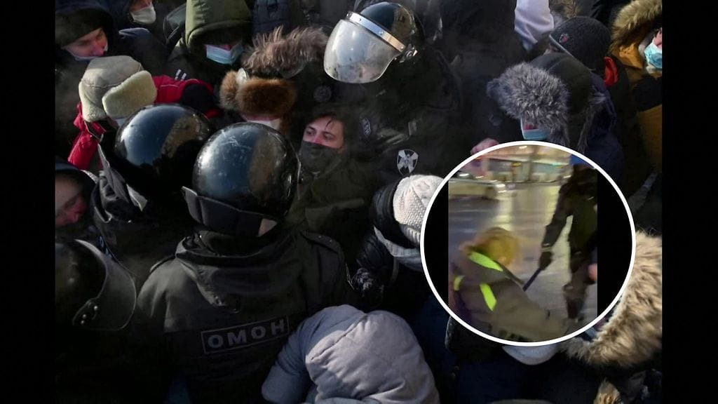 Artikkelin alussa olevalla videolla näkyy esimerkiksi, kuinka Pietarissa mellakkapoliisi potkaisee voimalla vatsaan naista, joka kysyy heiltä miksi he vievät erästä protestoijaa mukanaan.