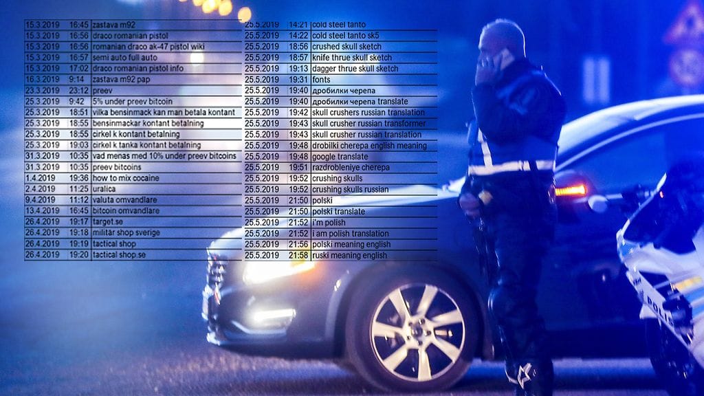 Hakuhistoriasta käy ilmi, että veljekset olivat kiinnostuneita salatuista sähköposteista ja virtuaalivaluutoista jo joulukuussa 2017. Loppuvuodesta 2018 hakuhistoriaan tallentuivat haut ampuma-aseista. Ensimmäiset Glock 17-pistooliin liittyvät haut tehtiin loppuvuodesta 2018.
