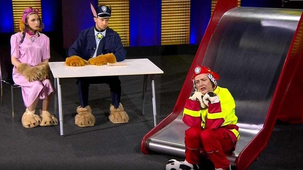 Putouksen Sarjapudottajat-osiossa päästiin näkemään Ryhmä Hau -henkinen sketsi keltaisen joukkueen toimesta.