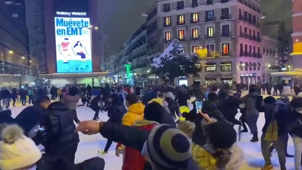 Espanjalaiset pelasivat lumipallosotaa keskellä Madridin katuja | MTV Uutiset