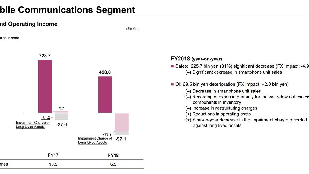 Sony on jo aiemmin kertonut aikovansa leikata 50 prosenttia älypuhelinyksikön kuluista yrittäessään kääntää älypuhelimet jälleen kannattavaksi liiketoiminnaksi huhtikuussa 2020 alkavalla tilikaudellaan. Sony on muun muassa kertonut sulkevansa tehtaansa Pekingissä, mitä suunnitelmaa on nyt entisestään vauhditettu.