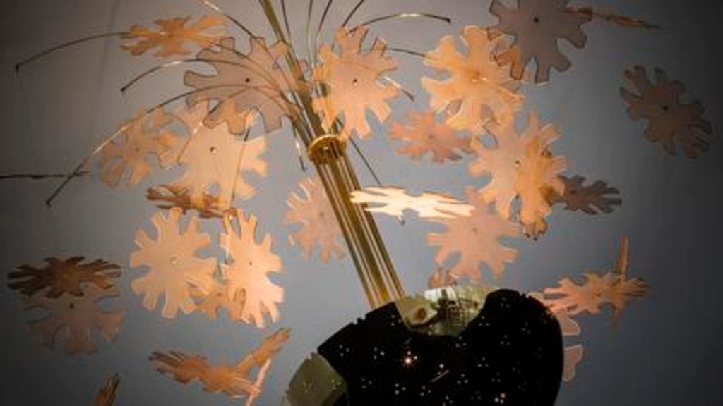 Myyntiin tulleen kokoelman arvokkain esine on varsin erikoinen tapaus: Se on Paavo Tynellin Snowflake-sarjan messinkinen valaisin, jonka hinta-arvio on 90 000–120 000 euroa. Pituutta valaisimella on 140 senttimetriä ja leveyttäkin kokonaisen metrin.