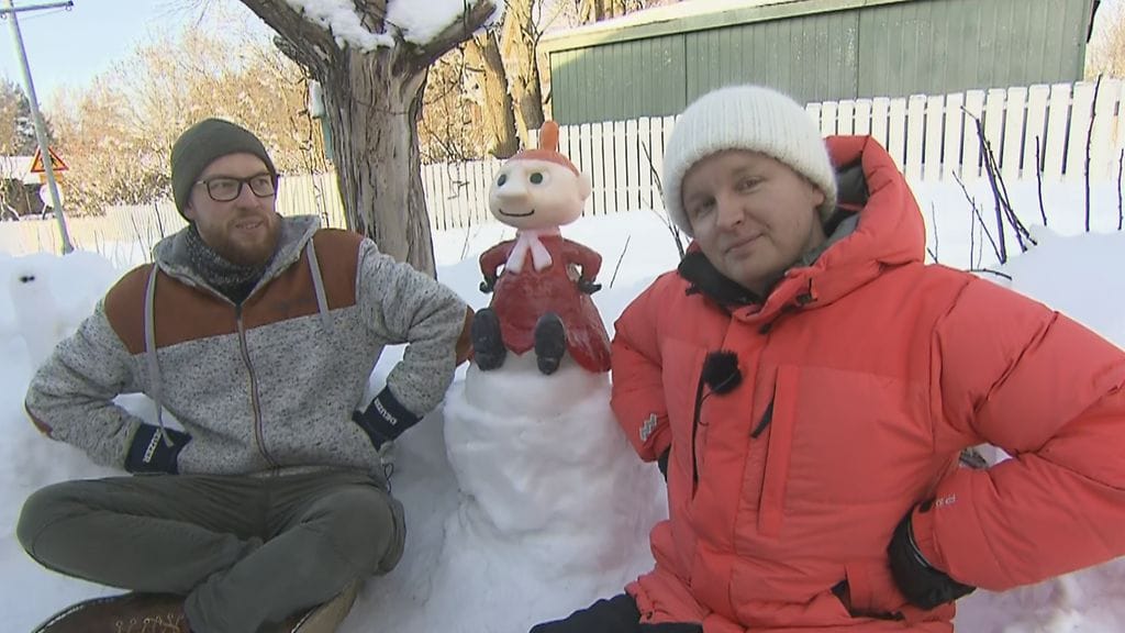 Vantaalainen perheenisä Kristian Kivimäki on taituroinut lumesta koko kansan tuntemia Muumihahmoja. Nyt rakastettuja hahmoja komeilee pihalla jo usein kappalein.